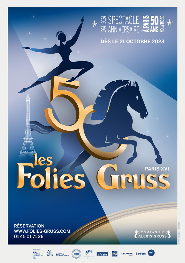Sous le chapiteau Gruss du Carrefour des Cascades à Paris, on retrouve bien les trois générations, d’Alexis et Gipsy Gruss à Célestine Gruss. 16 circassiens équestres, sans compter l’orchestre et deux nouveaux chanteurs de talent, Candice Parise et Xavier Ducrocq. 25 artistes sans compter les 50 chevaux de la cavalerie. Cette 50e création à Paris a des accents de comédie musicale, une forme originale pour articuler l’ensemble des numéros présentés dans la grande tradition du cirque.