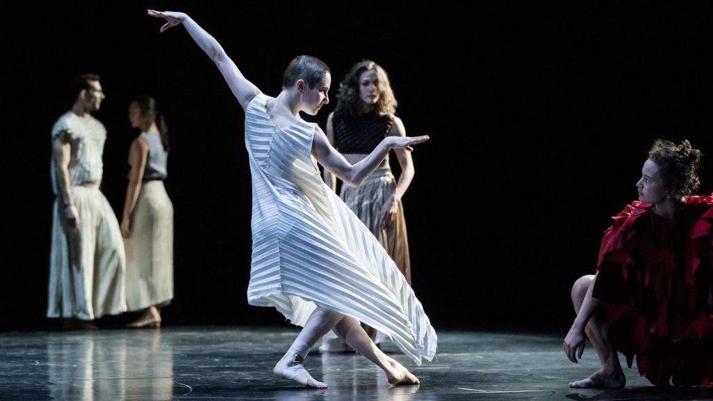 Rafael Bonachela a rassemblé ces danseurs de très haut niveaux, dans un spectacle baptisé ab [intra], signifiant en latin « de l’intérieur ». Ce nom paraît mal choisi de prime-abord face à l’intensité des corps. Mais nous sommes rapidement happés dans les univers des dix-sept danseurs qui se déploient sur scène avec une gestuelle athlétique et musclée d’une précision calculée. Il y a un niveau incroyable de prouesses techniques et corporelles dans ce spectacle.