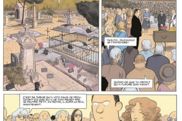 Le dessin et surtout les couleurs pastel du tome 4 rendent cette atmosphère apaisée. Quelque chose qui ressemblerait à une chanson de Brassens. Le fond y est, la forme reste tranquille. C’est un peu la marque de fabrique de Gibrat que ce soit dans les aventures de Goudard où il décrivait le passage de l’adolescence à l’âge adulte ou dans ses récits sur l’Occupation que ce soit « Le corbeau » ou dans « Le sursis ».