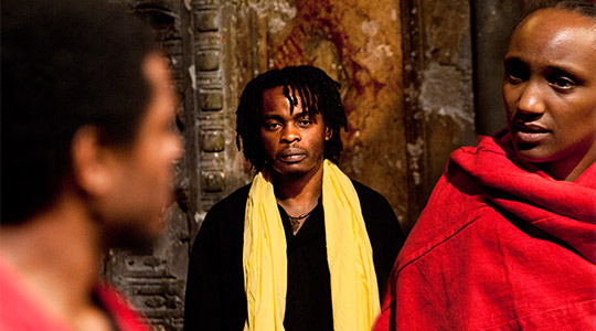 Comme toujours, Peter Brook réunit une troupe d’acteurs très expérimentés venus des quatre coins du monde : Carole Karemera (qui est belge d’origine rwandaise), Jared McNeill (américain, qui interprétait en 2014 « The Suit » sous la direction de Peter Brook), Ery Nzaramba (formé à Bruxelles et au Royaume-Uni) et Sean O’Callaghan (irlandais). Le percussionniste japonais Toshi Tsuchitori accompagne sur scène les métamorphoses des différents personnages. A la lumière, on retrouve Philippe Viallatte, qui a avait créé la lumière pour le Mahabharata en 1985 et qui, depuis 1993, a signé la lumière de toutes les créations de Peter Brook aux Bouffes du Nord.