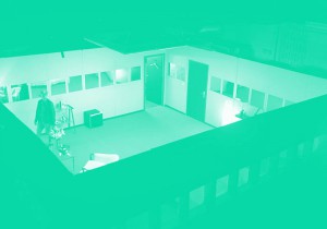 Le metteur en scène Karim Bel Kacem, formé au jeu d’acteur, à la sculpture, à la performance, et par ailleurs artiste résident au Théâtre Saint Gervais de Genève, crée pour l’occasion une forme complètement originale qu’il appelle « pièce de chambre ». A Nanterre, « Blasted » est accueilli dans l’atelier d’assemblage de décors du Théâtre des Amandiers. Le spectateur est donc accompagné dans un hangar, à l’intérieur duquel est installée une boîte en bois de la taille d’une grande chambre d’hôtel. La boîte est trouée de fenêtres en plexi sur ces quatre côtés: fenêtres de l’extérieur et miroirs de l’intérieur. Les spectateurs prennent place sur des bancs situés le long des quatre côtés, chacun devant sa fenêtre particulière, met un casque sur ses oreilles pour une expérience tout à fait personnelle et extraordinaire. Le casque retransmet en direct les échanges qui ont lieu à l’intérieur de la boîte, mais pas seulement: ambiance sonore, explosions, bruits de bottes, chants de supporters dans un stade de foot bondé, contenu de rêves ou souvenirs (la création sonore est signée Oriane Duclos).