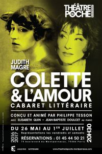 C’est cet aspect de la personnalité de Sidonie-Gabrielle que Philippe Tesson a voulu mettre en lumière, accompagnée de Judith Magre, d’Elisabeth Quin et du pianiste Jean-Baptiste Doulcet. Le lieu, une salle du sous-sol du Théâtre de Poche, a été aménagé en cabaret, et se prête à l’échange. Les tables sont disposées face à celle des protagonistes. Philippe Tesson évoque avec emphase la grande Colette, lit des extraits de ses livres, commente, se lève, se rassied et souligne encore des phrases de l’écrivain amoureuse, amusée ou triste.
