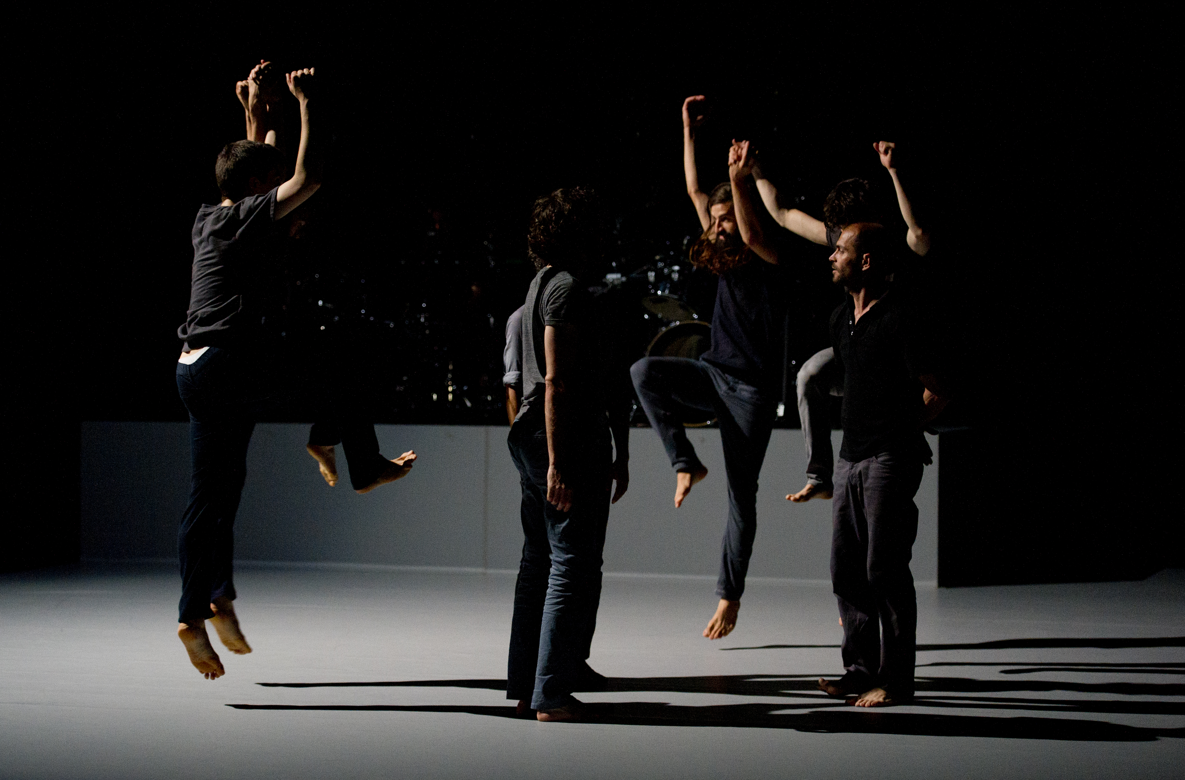 Dans D’après une histoire vraie, huit danseurs travaillent les synchronismes et leurs variations dans une construction formelle qui parfois rappelle subtilement les recherches chorégraphiques d’Anne Teresa De Keersmaecker.