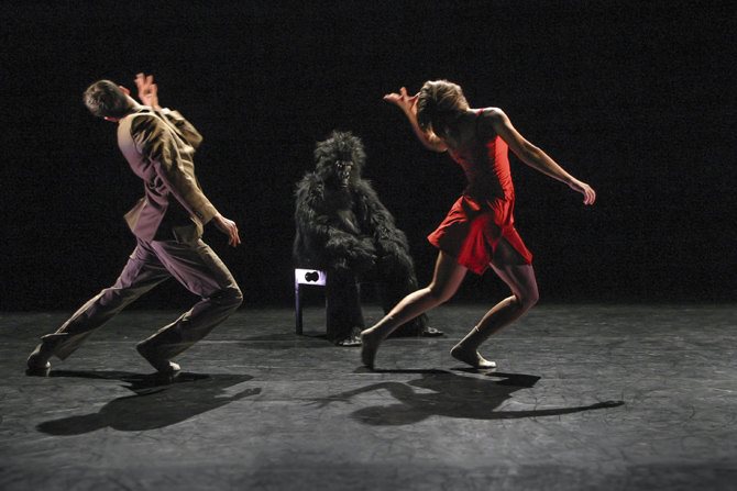 On y repère la constance d’un vocabulaire gestuel: épaules en avant, dos rond-tête basse-bras ballants comme somnambules, travail au sol qui glisse sans bruit comme les enfants la nuit…