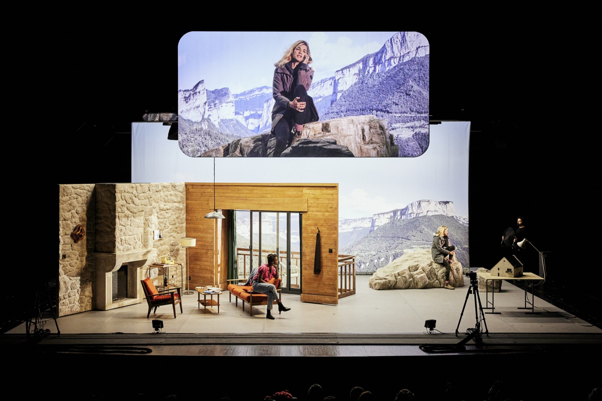 Comme la personnage principale est cinéaste, Marc Lainé (auteur-metteur en scène et scénographe) a eu la subtile idée de projeter le film de la pièce (réalisé en direct) sur un grand écran situé au dessus de la scène. Manifestement, Marc Lainé est très fier de ce dispositif qui lui permet de montrer le fantôme du mari sur scène, mais pas à l’écran.