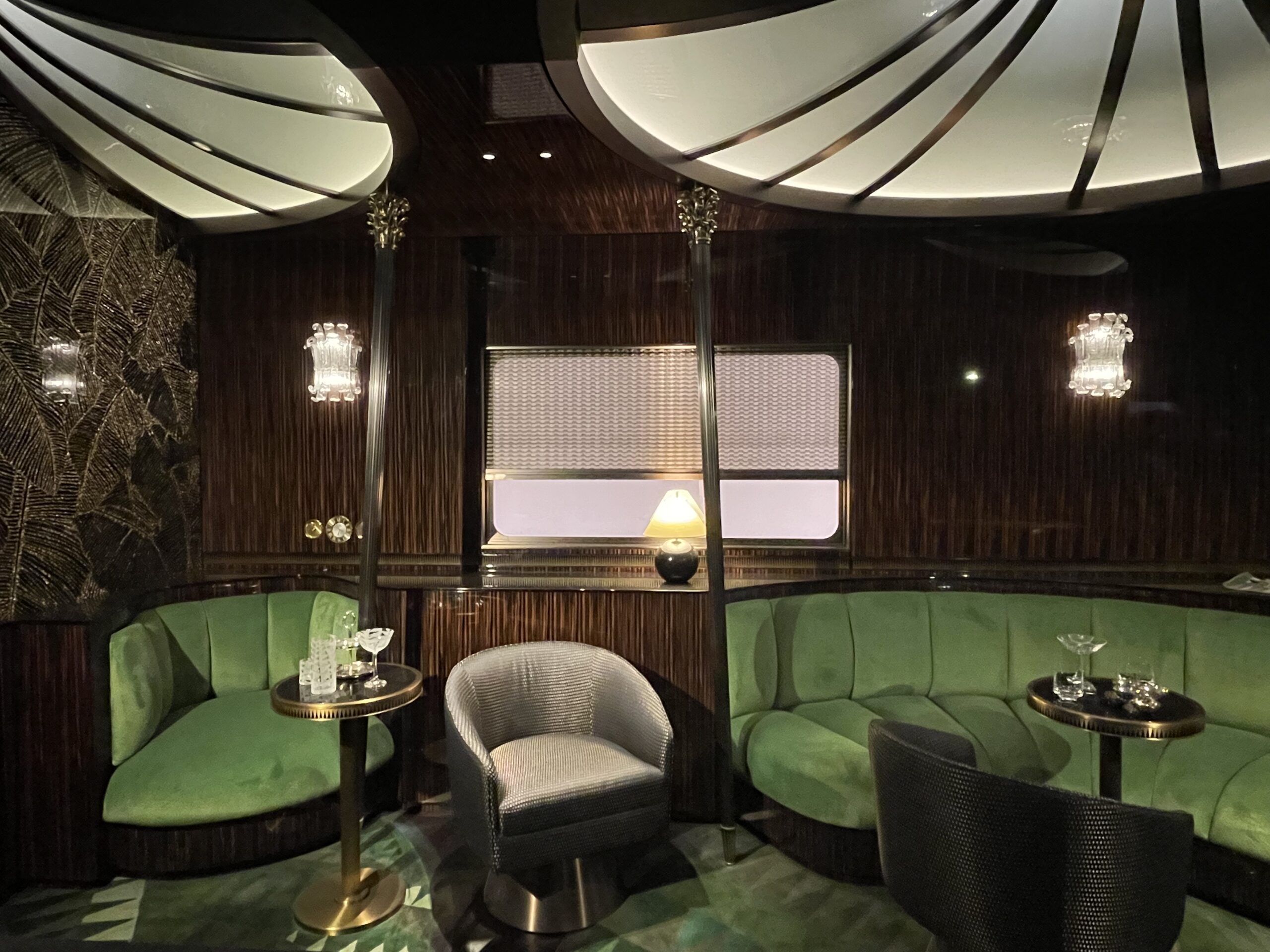 Des maquettes à taille réelle du wagon-bar, d’un wagon-restaurant ou d’une cabine permettent de s’immerger dans le confort raffiné de ce train d’exception, tandis que des échantillons des éléments du décor à différentes étapes de leur réalisation, accompagnés de films explicatifs, révèlent toute la complexité et l’excellence de ces métiers d’art.