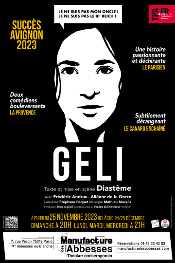 Retrouvée morte d’une balle dans la poitrine, Geli, la nièce d’Hitler est au cœur de cette pièce écrite et mise en scène par Diastème. Cet évènement semble avoir eu un fort impact sur Hitler car Goering déclara: « À la mort de Geli, Hitler a perdu la dernière goutte d’humanité qui lui restait ».