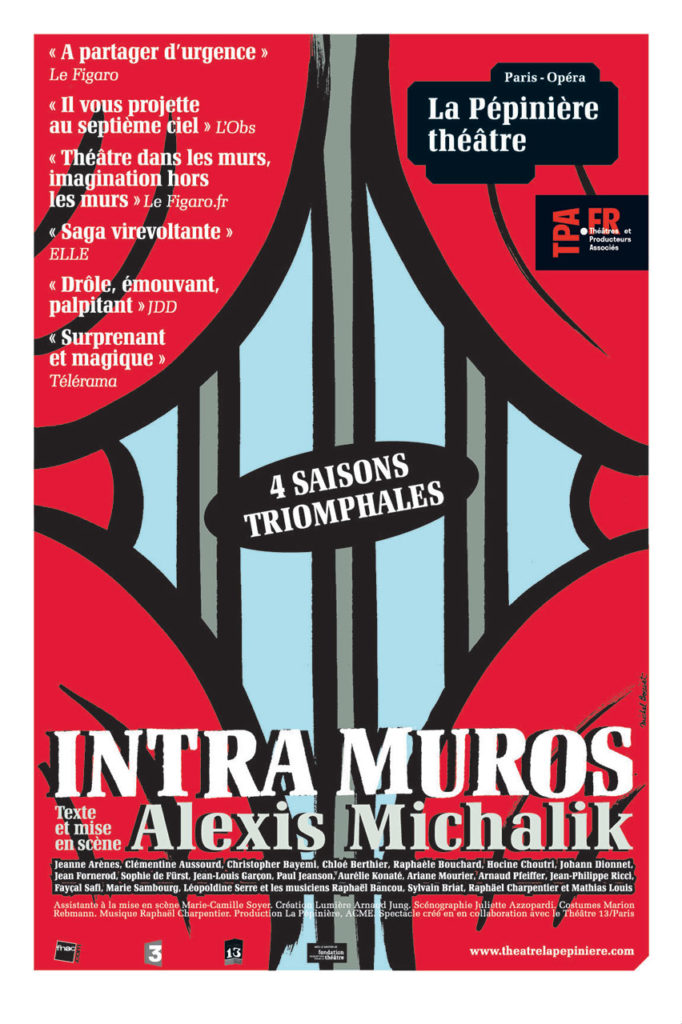 INTRA MUROS c’est une fête un peu éruptive et brouillonne où on célèbre la vie. Et en même temps c’est une machination bien pensée, huilée, intelligente, qui ne laisse rien au hasard.