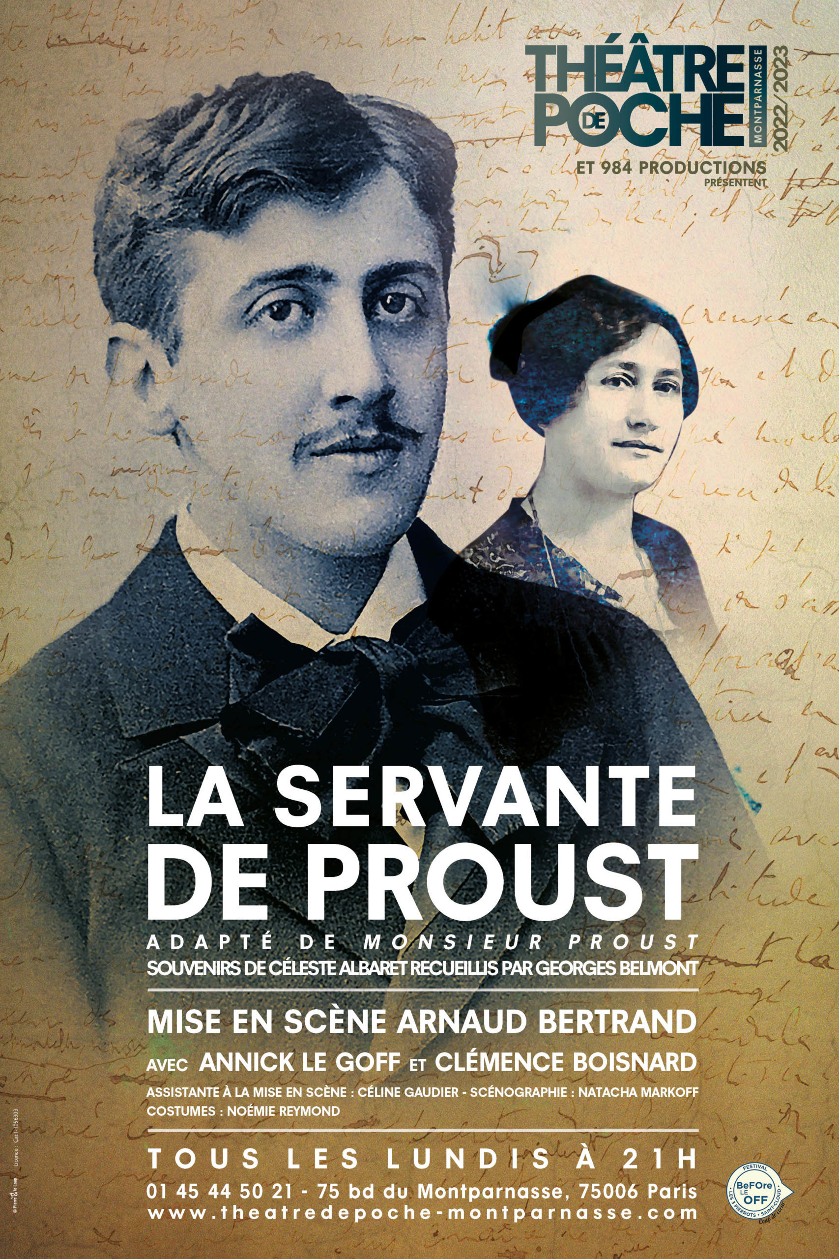 Le théâtre de Poche-Montparnasse a, comme souvent, opté pour un angle original. La Servante de Proust, c’est l’histoire incroyable de Céleste Albaret, la servante et gouvernante du très grand écrivain durant les huit dernières années de sa vie. Elle entre au service de Proust un peu par hasard en 1914 et y demeurera jusqu’à la mort de ce dernier en 1922. La femme refusera longtemps d’évoquer cette période avant de se laisser convaincre dans les années 1970 par Georges Belmont. La parution de Monsieur Proust en 1973 suscitera de nombreuses polémiques. A-t-elle menti ? Enjolivé ? Peu importe pour le grand public, qui s’arrache le livre. La critique, en revanche, alliée à certains écrivains, fait la moue et ne se prive pas de la mépriser. Mais comment donc ? Une servante illettrée, amie de ce très grand auteur ? Ne leur en déplaise, l’ouvrage devient vite culte et est traduit. Car cette histoire d’admiration, de dévouement mais aussi d’amitié réciproque, n’est pas commune.