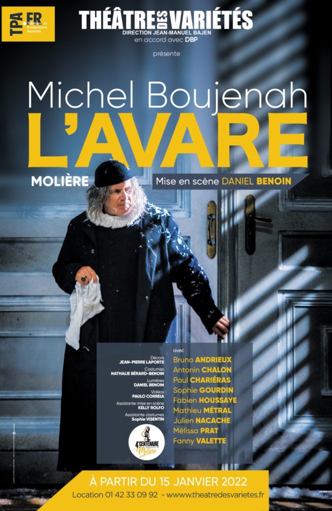 L’avare est l’une des pièces les plus emblématiques et les plus jouées de Molière. Dans le rôle d’Harpagon, leurs contemporains ont pu voir le talent des plus grands acteurs, à commencer par Molière puis, dans l’ordre et sans que cette liste soit exhaustive : Charles Dullin, Jean Vilar, Louis de Funès, Michel Serrault, Michel Bouquet, Denis Podalydès et aujourd’hui : Michel Boujenah. Autant le dire tout de suite : dans ce grand classique, Michel Boujenah est à la hauteur. Avec son style épuré, il apporte ce qu’il faut d’humanité. Le rôle étant ce qu’il est – caricatural – il lui faut une interprétation sobre. Pas besoin d’en rajouter !