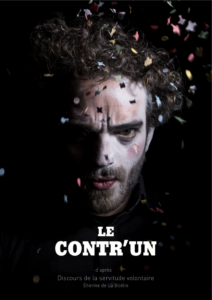 Charly Magonza et Agathe Mortelecq ont fait le pari de mettre en scène le Discours de la servitude volontaire de La Boétie. Bien que ce texte ne soit pas destiné à être prononcé en public, on est captivé par le ton direct employé. Nous avons l’impression d’être invités à dialoguer avec le comédien. On serait presque tenté de vouloir lui répondre lorsqu’il nous apostrophe !