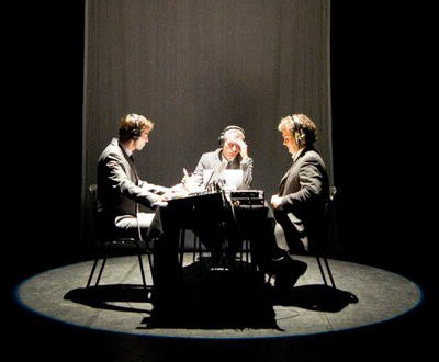 Nicolas Lambert est philosophe; il a fait ses armes au Théâtre Universitaire de Nanterre et s’est investi dans des projets radiophoniques, notamment avec Antoine Chao dans « Fréquences éphémères ». L’idée de départ de la trilogie « Bleu, blanc, rouge » était d’ailleurs destinée aux ondes. Et portée à la scène, son dernier volet rend un hommage assez appuyé à ce média si discret et si important.
