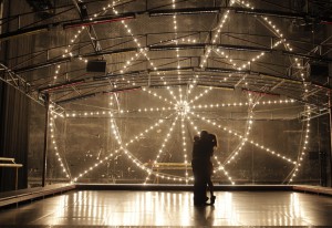 C’est dans un décor absolument grandiose de fête foraine, empreint, d’autant de magie que de désenchantement, que la Compagnie Air de Lune mise en scène et en lumières par Jean Bellorini, nous emmène dans une histoire brute et touchante à la fois. « Brute » car les cœurs – même amoureux – y sont durs et la violence pallient parfois l’absence de mots ou d’espoir, et « touchante » par la vérité et l’humanité dont les protagonistes transpirent. Comme dans ses œuvres précédentes, Jean Bellorini accompagne magnifiquement le tout en musique, soit pour nous entraîner par la force d’une liberté furieuse – qui n’est pas sans rappeler celle des films de Kusturica- , soit pour prendre le relai, dans les moments de doute ou de désespoir. Grâce aux superbes compositions de Sébastien Trouvé et de Hugo Sablic, les comédiens, tous également chanteurs et musiciens, interprètent une incroyable palette d ‘émotions. A cet égard, le solo de la harpiste Lidwine (à découvrir !) – complètement lunaire (dans le genre de Bjork) – laisse bouche bée et presque la larme à l’œil, devant tant d’énergie et de beauté.