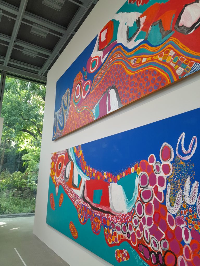 Juste des formes et des couleurs! L’artiste aborigène convoque l’émotion et nous laisse deviner tout un monde perdu. D’une subtilité rare.