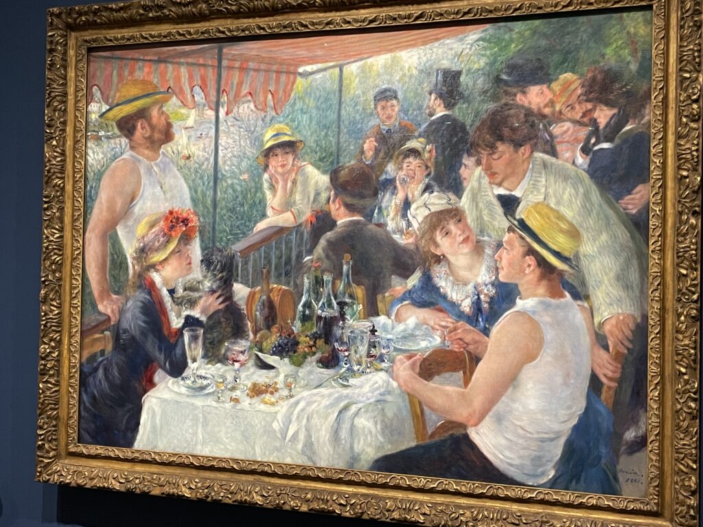 L’un des points forts de cette exposition est de présenter dans un espace dédié, assorties d’un pupitre de médiation extrêmement riche et précis, trois des plus grandes toiles peintes par l’artiste dans cette période : Le Cabaret de la mère Antony (1866), œuvre de style réaliste peu connue du grand public, venue de Stockholm, et les icônes que sont Le Bal du Moulin de la Galette (1876), conservé à Orsay, et Le Déjeuner des canotiers (1880-1881), prêté par la Phillips Collection de Washington.