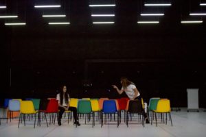 C’est en assistant à la première répétition de la scène entre les deux sœurs de sa pièce « Actrice » en octobre 2017 que Pascal Rambert, en entendant Audrey Bonnet et Marina Hands, a commencé à leur écrire une pièce rien que pour elles. Cela donnera « Sœurs (Marina et Audrey) » ; une scène unique d’1h30, comme un long travelling où les mots sont des flèches ou des scalpels. Mots-outils pour comprendre le passé, se délivrer d’une emprise, mots-armes et mots-boomerangs… Les actrices tournent autour d’un point central, s’empoignent (rarement), font valser des chaises. Car il ne s’agit pas de retrouvailles, ni de pardon, mais bien d’un profond règlement de comptes. Et comme à la fin d’une guerre, on n’est pas sûr qu’il y ait un gagnant à l’issue du combat.