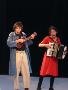Sous un maquillage léger, Anne Kaempf et Lior Shoov campent deux personnages attachants. Avec leur talent de clown, de musicienne, circassienne et danseuse, elles captent l’attention. Par leurs expressions du corps comme du visage et leur sens de l’improvisation, elles racontent une histoire.